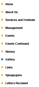 Home | About Us | Services | Management | Events | Events Continued | History | Gallery | Links | Synagogues| Letters Received |